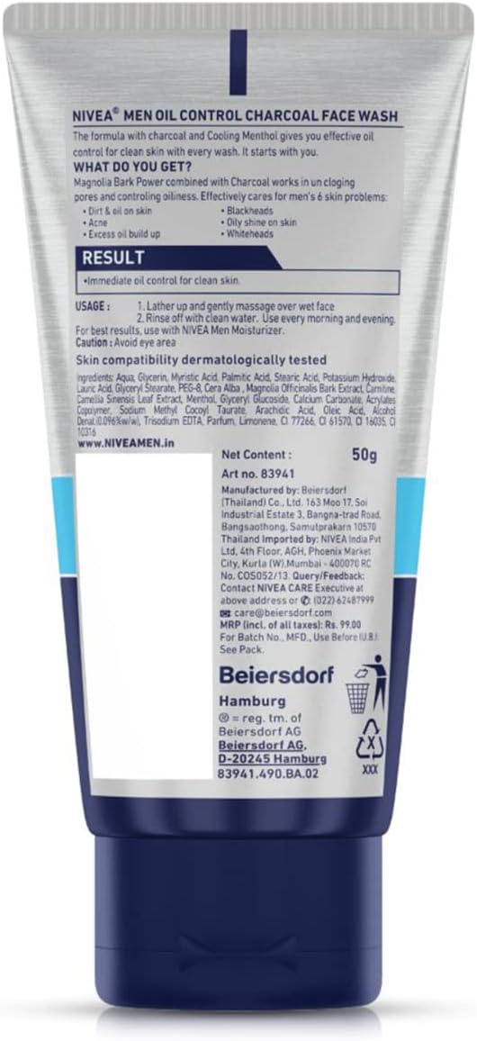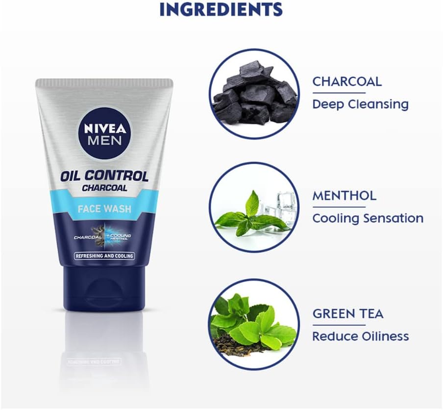 🧴 غسول نيفيا للرجال بالفحم والنعناع – للبشرة الدهنية (50 جم)